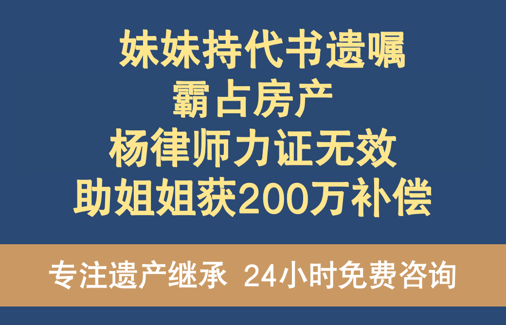 妹妹持代书遗嘱霸占房产,杨律师力证无效助姐姐获200万补偿
