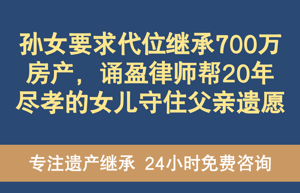 孙女要求代位继承700万房产,诵盈律师帮20年尽孝的女儿守住父亲遗愿