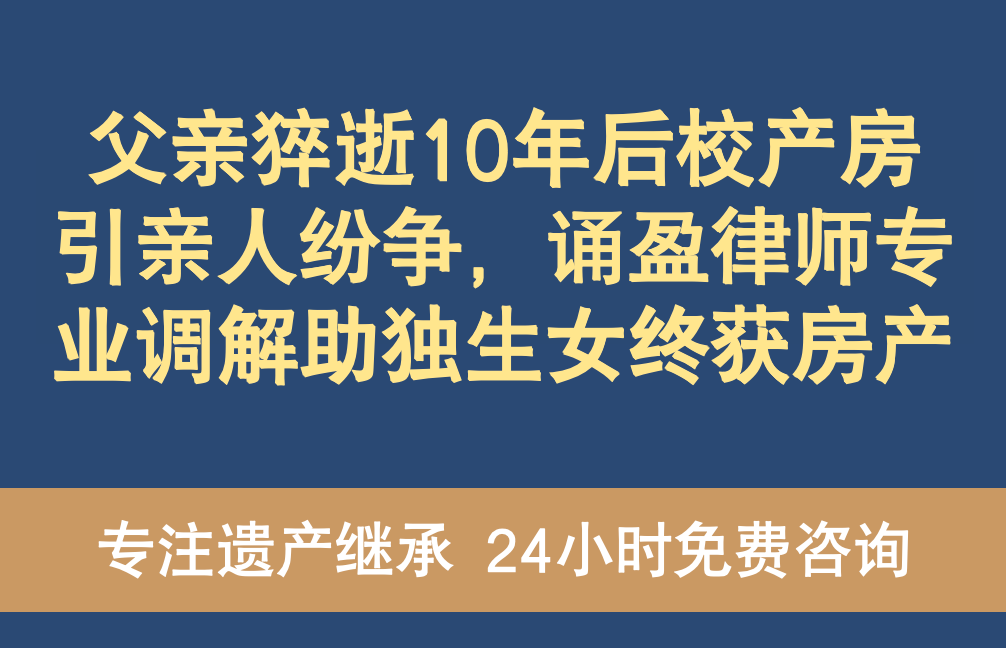 父亲猝逝10年后校产房引亲人纷争,诵盈律师专业调解助独生女终获房产