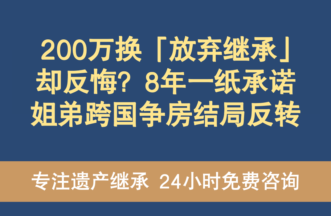 200万换「放弃继承」却反悔?8年一纸承诺,姐弟跨国争房结局反转