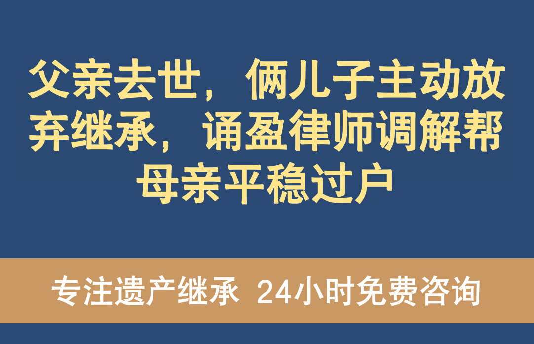 父亲去世,俩儿子主动放弃继承,诵盈律师调解帮母亲平稳过户